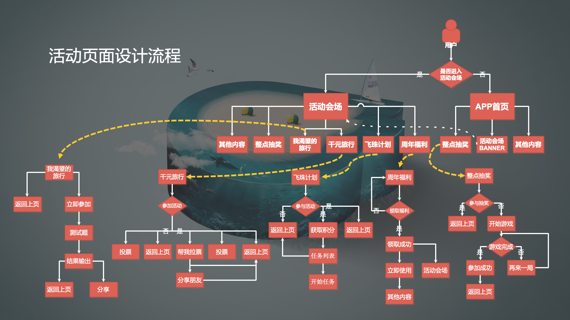 流量越来越贵,推广成本太高,投入资源开发H5,在微信进行活动宣传;针对用户普遍没有明确的旅行目的,没钱旅行的现状,以#测试你的旅行人格 —#推荐你的旅行路线 —#估算你的旅途费用 —#实现你的旅行愿望为主线开发H5;H5测试类似调查问卷,收集用户想去哪?什么时候?和谁?怎么去?为什么去?去做什么?引导用户做选择题,锁定需求。