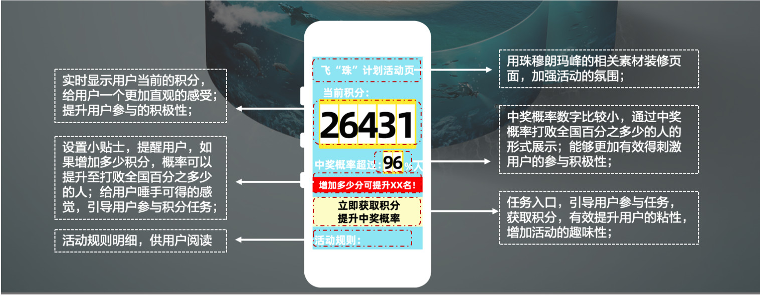 ②关联热点,设置奖项“游玩珠穆朗玛峰”,同时与《攀登者》电影进行品牌互动;
